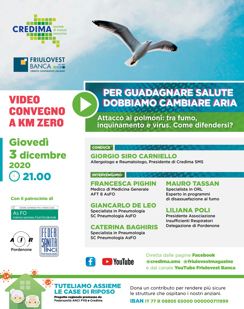 Video conferenza “PER GUADAGNARE SALUTE DOBBIAMO CAMBIARE ARIA . Attacco ai polmoni: tra fumo, inquinamento e virus. Come difendersi?"