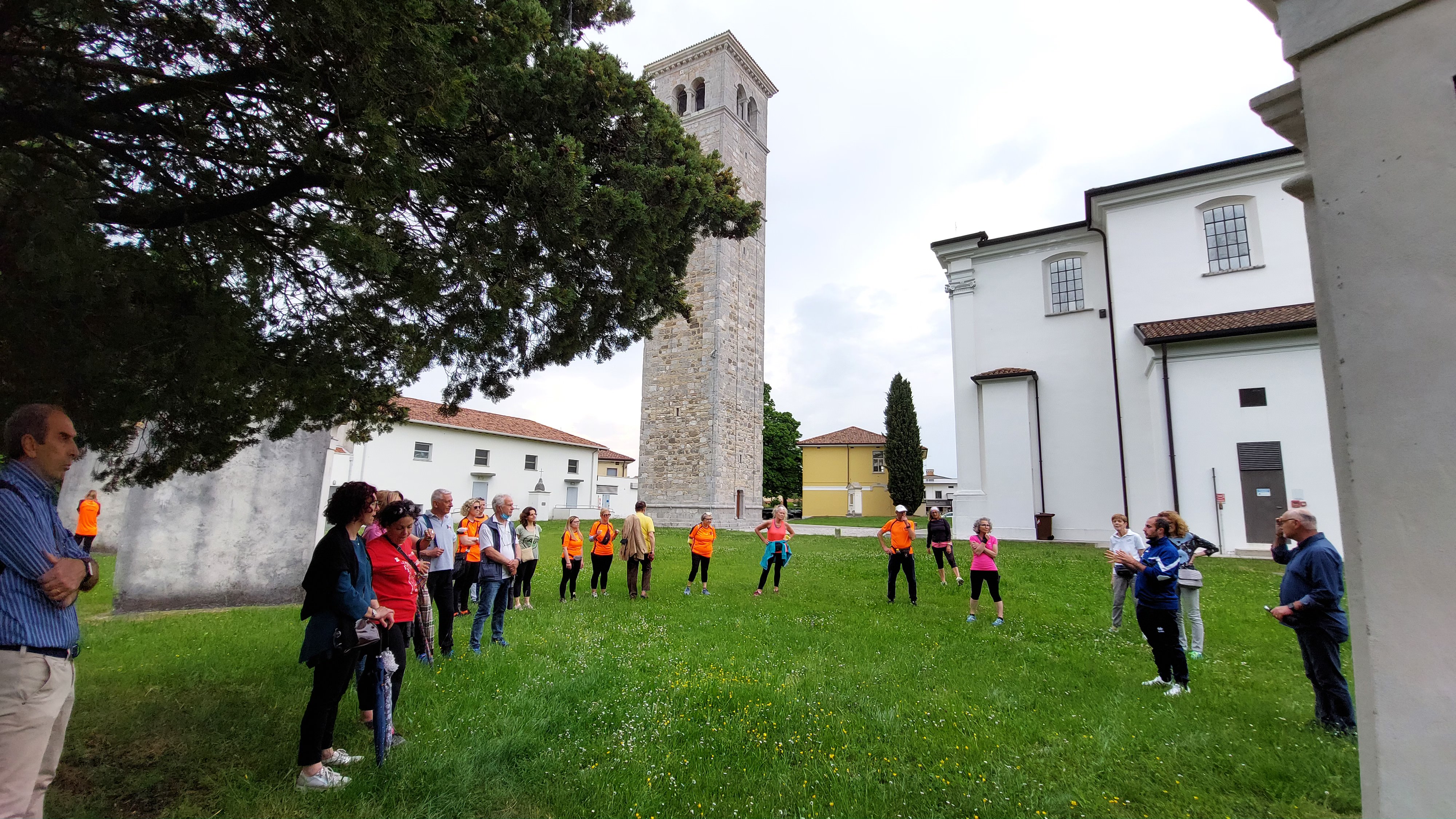 E' seguita la passeggiata guidata da Mattia D’Alleva laureato in Scienze Motorie UNIUD, che ha costituito la parte pratica del Corso per Coordinatori “Gruppi di Cammino” coordinato dal prof. Stefano Lazzer, UNIUD. D'Alleva ha accompagnato la passeggiata con semplici, ma efficaci esercizi molto utili per tutti.