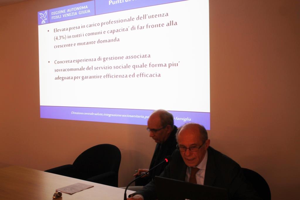 “Nei Comuni del FVG è presente un’elevata presa in carico professionale delle persone (4,3%) insieme alla capacita’ di far fronte alla crescente e mutante domanda, tramite una concreta esperienza di gestione associata sovracomunale per garantire efficienza ed efficacia della pianificazione sociale locale e per attivare tutti gli attori e le risorse del territorio (volontariato, associazionismo,fondazioni, cooperazione sociale) su obiettivi comuni.“Il sociale” rappresenta un sistema ricco e complesso, il cui valore totale in FVG è di quasi un miIione di euro erogati da diversi soggetti, Regione, Comuni, INPS, compartecipazione utenza (rette, etc.). Sono questi i principali dati del “Rapporto sociale 2013 in FVG”, sintetizzati da Pier Oreste Brusori, direttore area servizi sociali e integrazione sociosanitaria della direzione centrale, in occasione del seminario “Rapporto sociale FVG e servizi in rete sul territorio. Il ruolo delle Aziende pubbliche servizi alla persona”, promosso da Federsanità ANCI FVG, a Codroipo, in collaborazione con ASP “D. Moro” e Ambito distrettuale 4.4, Regione e Comune,con il patrocinio della BCC di Basiliano e AUSER Medio Friuli.