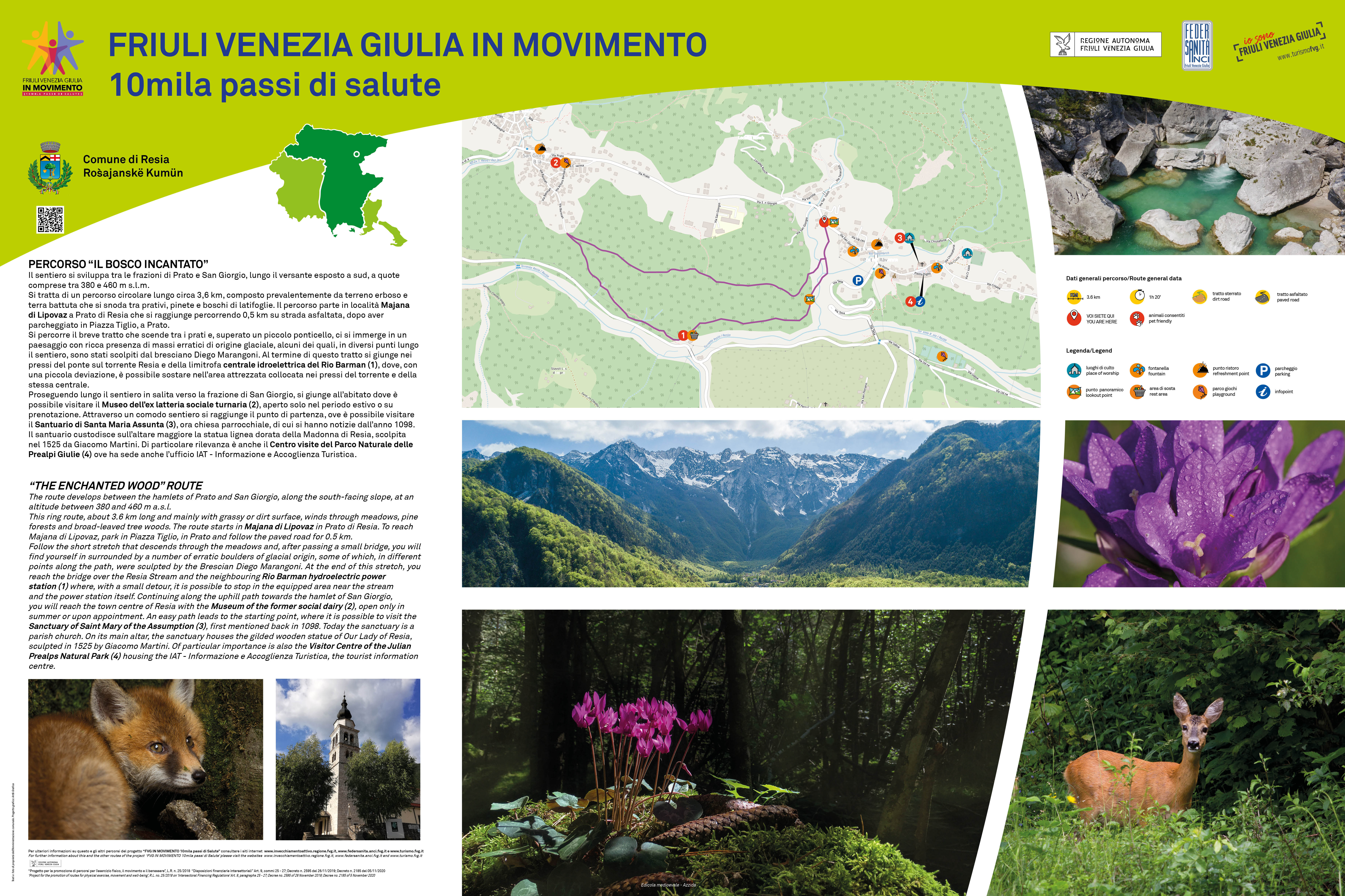 Il ritrovo è previsto per le ore 08.45, in piazza del Tiglio a Prato di Resia, vicino al cartellone del progetto "FVG IN MOVIMENTO - 10mila passi di Salute".