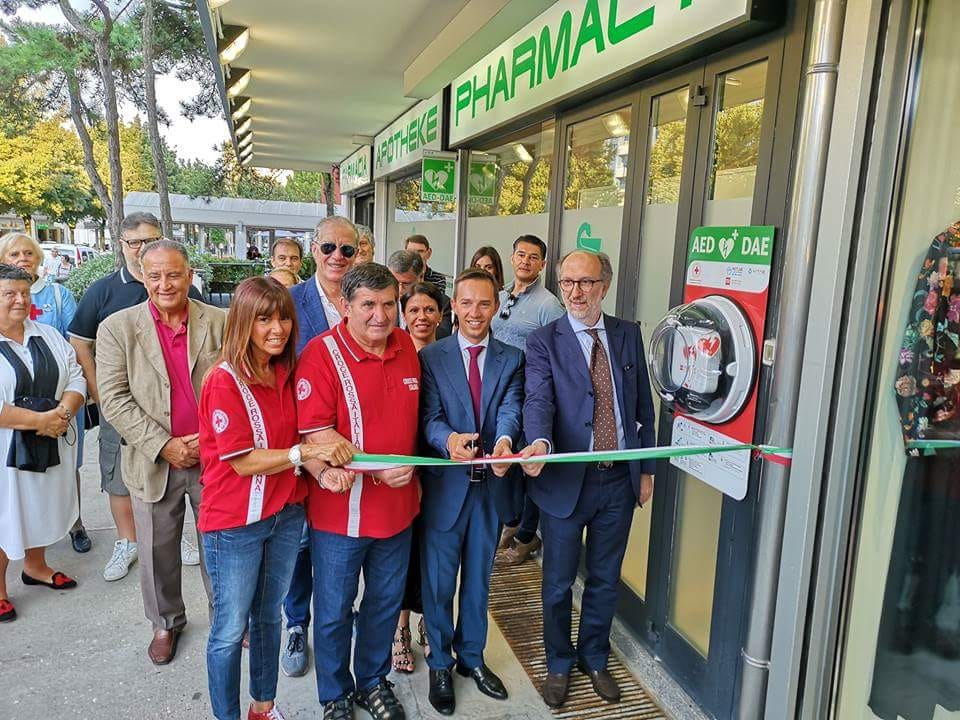 E' stato inaugurato giovedì scorso, a Lignano Pineta, il nuovo defibrillatore (ci saranno altri 5 a Lignano) installato dalla CRI - Croce Rossa Italiana della Provincia di Udine, presso la farmacia comunale Lignano Pineta, nell'ambito del progetto "CRI nel cuore" avviato nel marzo scorsoi insieme alla SORES -Sala Operativa Regionale Emergenza Sanitaria – FVG Centrale Operativa 118, Federsanita' Anci FVG, Federfarma FVG e associazioni di volontariato.