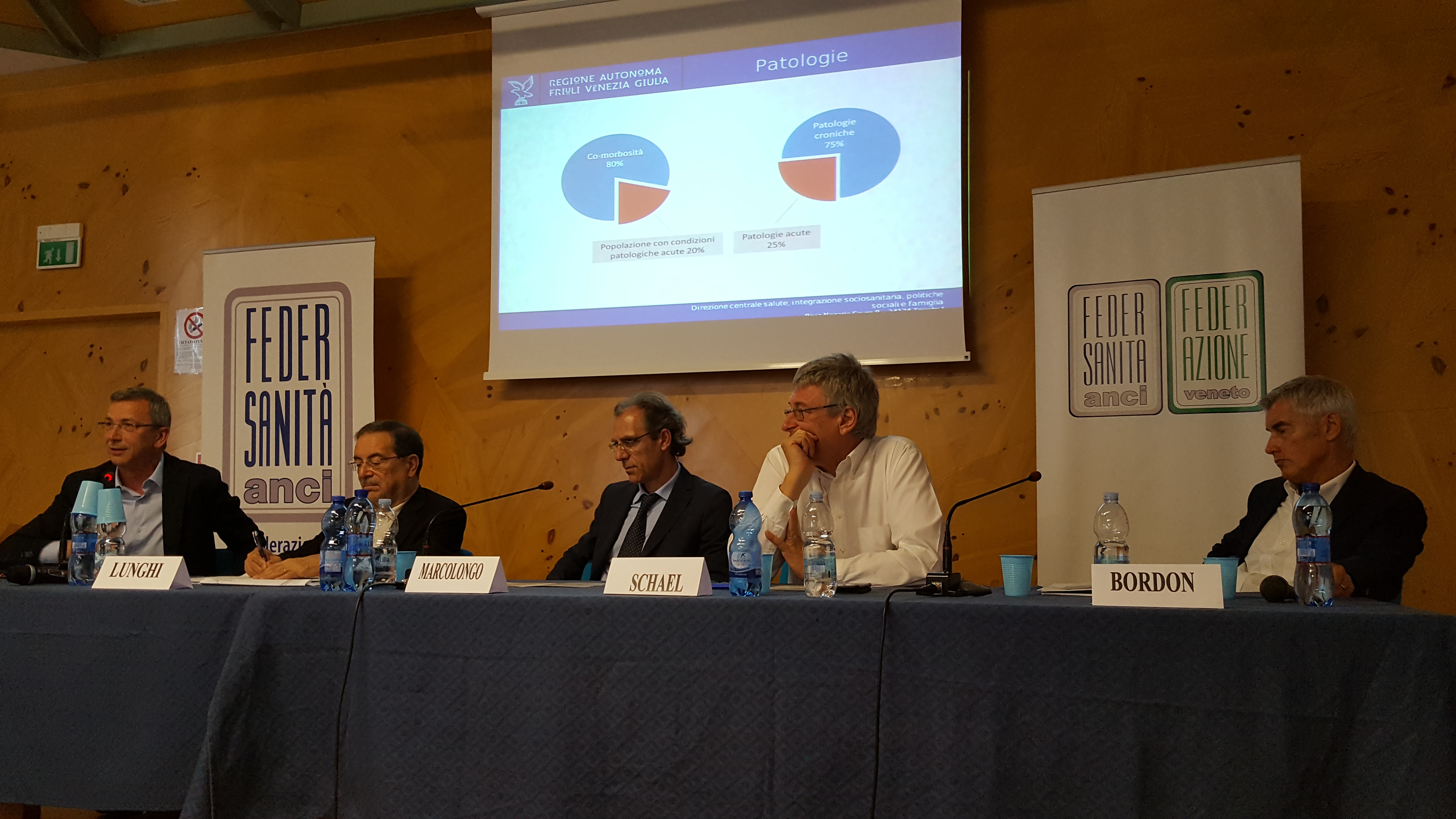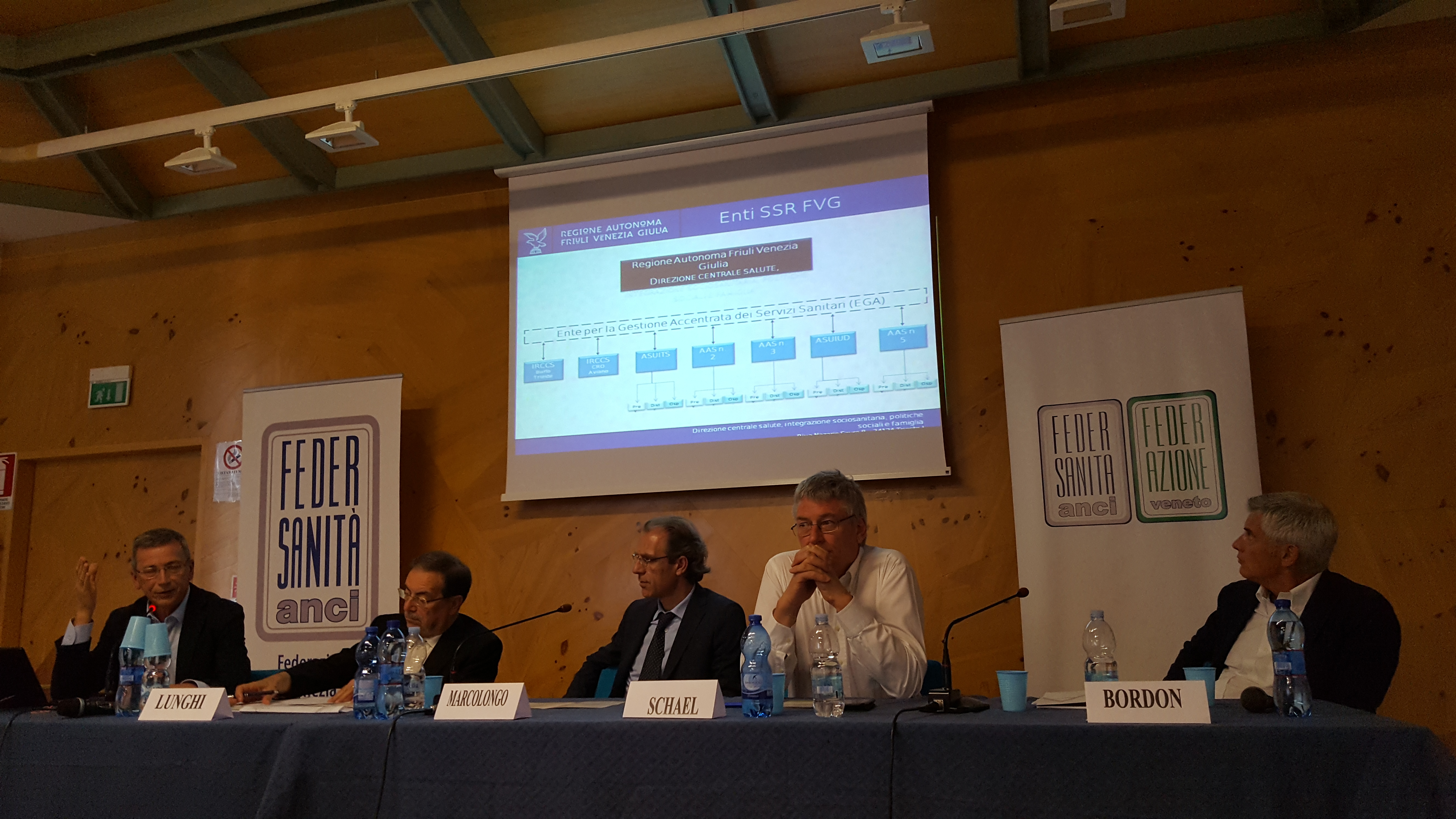 Dopo i saluti del neo sindaco di Cortina, Gianppietro Ghedina, il presidente nazionale di Federsanità ANCI, Angelo Lino Del Favero (Direttore Istituto Superiore di Sanità) ha valutato positivamente le diverse riforme del SSR in corso di attuazione nelle regioni e province del Nord Est e allo stesso tempo, in considerazione dei fenomeni strategici quali l'allungamento della durata della vita media, l'aumento delle patologie cronico degenerative e gli elevati costi dei nuovi farmaci e delle tecnologie, ha auspicato il massimo impegno per investire sulla salute e la sostenibilità del sistema sanitario universalistico, un patrimonio per tutte le persone. Allo stesso tempo ha invitato i manager e gli esperti di sanità ha dare priorità ai risultati di salute in termini qualitativi (medio periodo) e non più solo quantitivi.