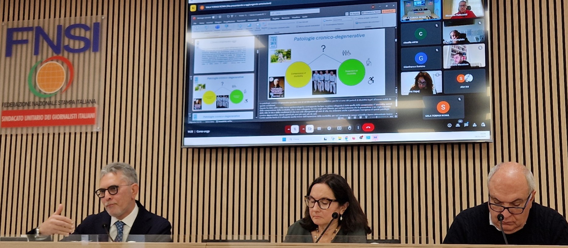 Grande partecipazione e proposte per il presente e futuro al secondo Corso di aggiornamento sui temi dell’invecchiamento e dei riflessi sull’informazione organizzato dall’Ungp-Fnsi insieme a Casagit Salute, a Roma, presso la Sala Walter Tobagi, nella sede della Federazione della Stampa.