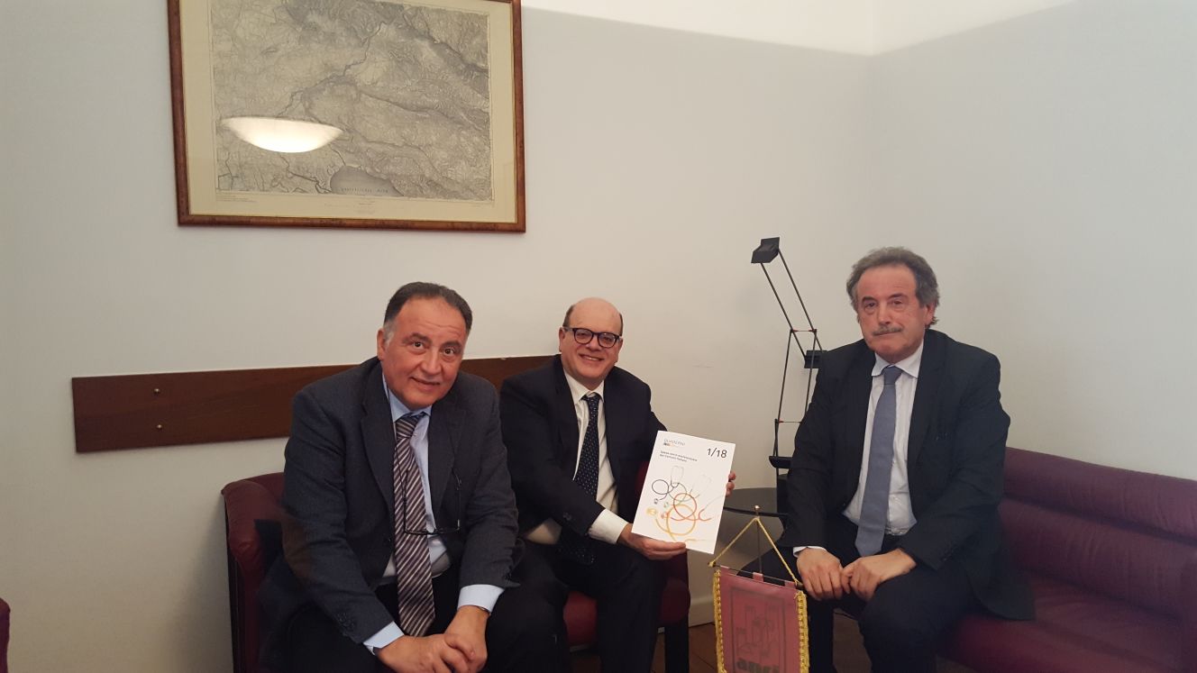 Il Direttore del Centro Documentazioni e Studi Anci Nazionale Lucio D'Ubaldo ha incontrato nella sede di ANCI FVG, il 23 febbraio, i presidenti di ANCI FVG, Mario Pezzetta e di Federsanità Anci FVG (Delegato Anci Welfare Fvg) Giuseppe Napoli per presentare la ricerca “La spesa socioassistenziale dei Comuni Italiani”, realizzata dal Centro Documentazione e Studi dei Comuni CDSC www.centrodocumentazionecomuni.it di ANCI.