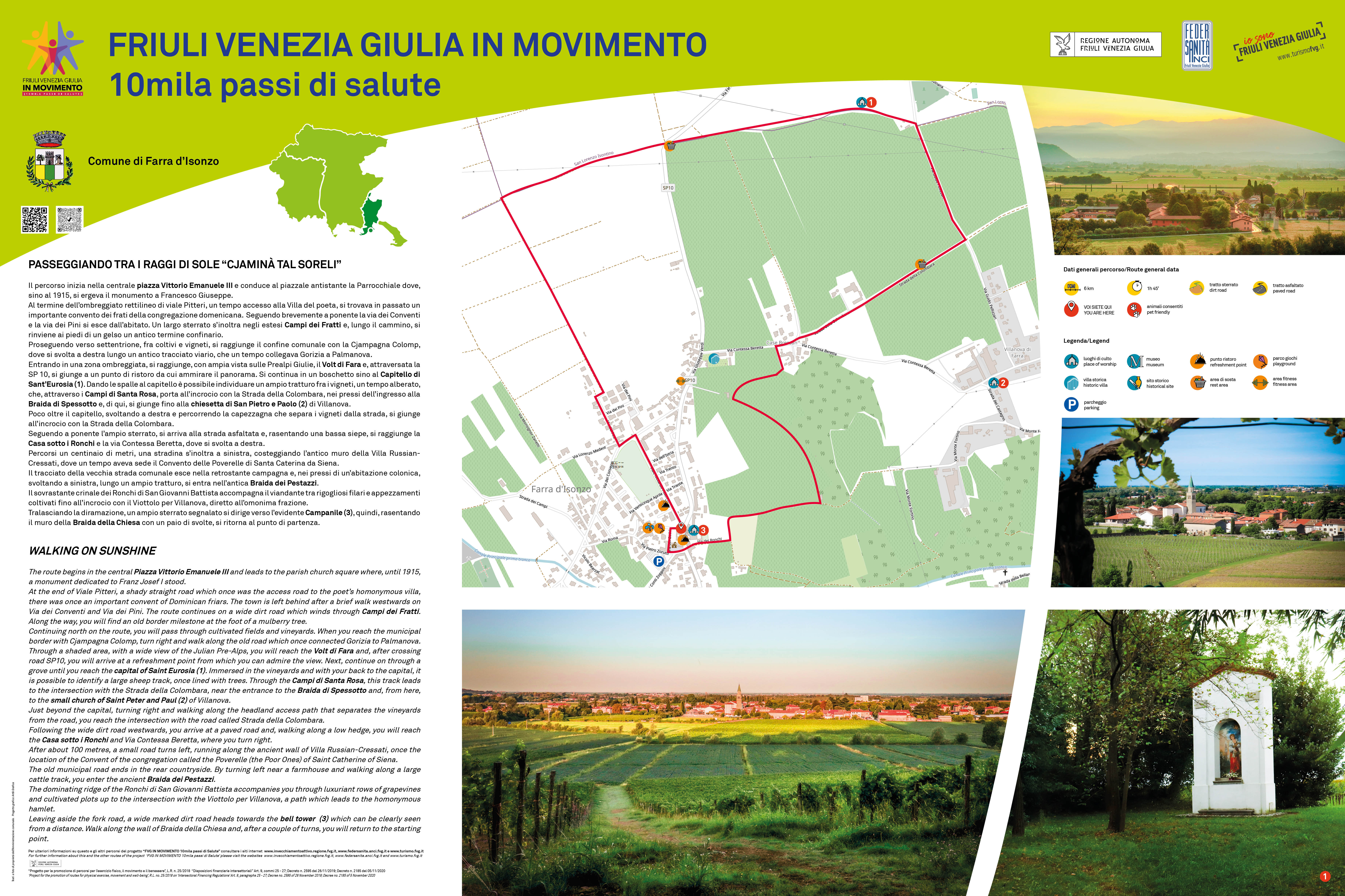 Il progetto "FVG IN MOVIMENTO.10mila passi di Salute" ( 2019 -2014) sostenuto dalla Regione FVG - Direzione centrale Salute e realizzato da Federsanità ANCI FVG insieme alla DC Salute, d'intesa con ANCI FVG, con la collaborazione del Dipartimento di Scienze Economiche e Statistiche dell'Università di Udine e PromoTurismo FVG, al quale aderiscono 91 Comuni per 82 percorsi, prosegue e si amplia.
