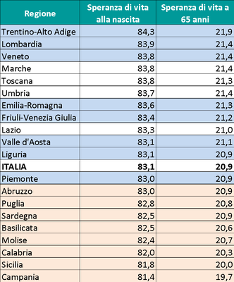 Rispetto a dieci anni fa, la spesa complessiva ha subito una variazione positiva pari al 22%, ma restano strutturate le disuguaglianze territoriali: il Nord sempre al di sopra del resto del Paese, un Centro che insegue ed un mezzogiorno perennemente in affanno. La speranza di vita alla nascita in Campania è 81,4 anni contro 84,3 del Trentino Alto Adige
