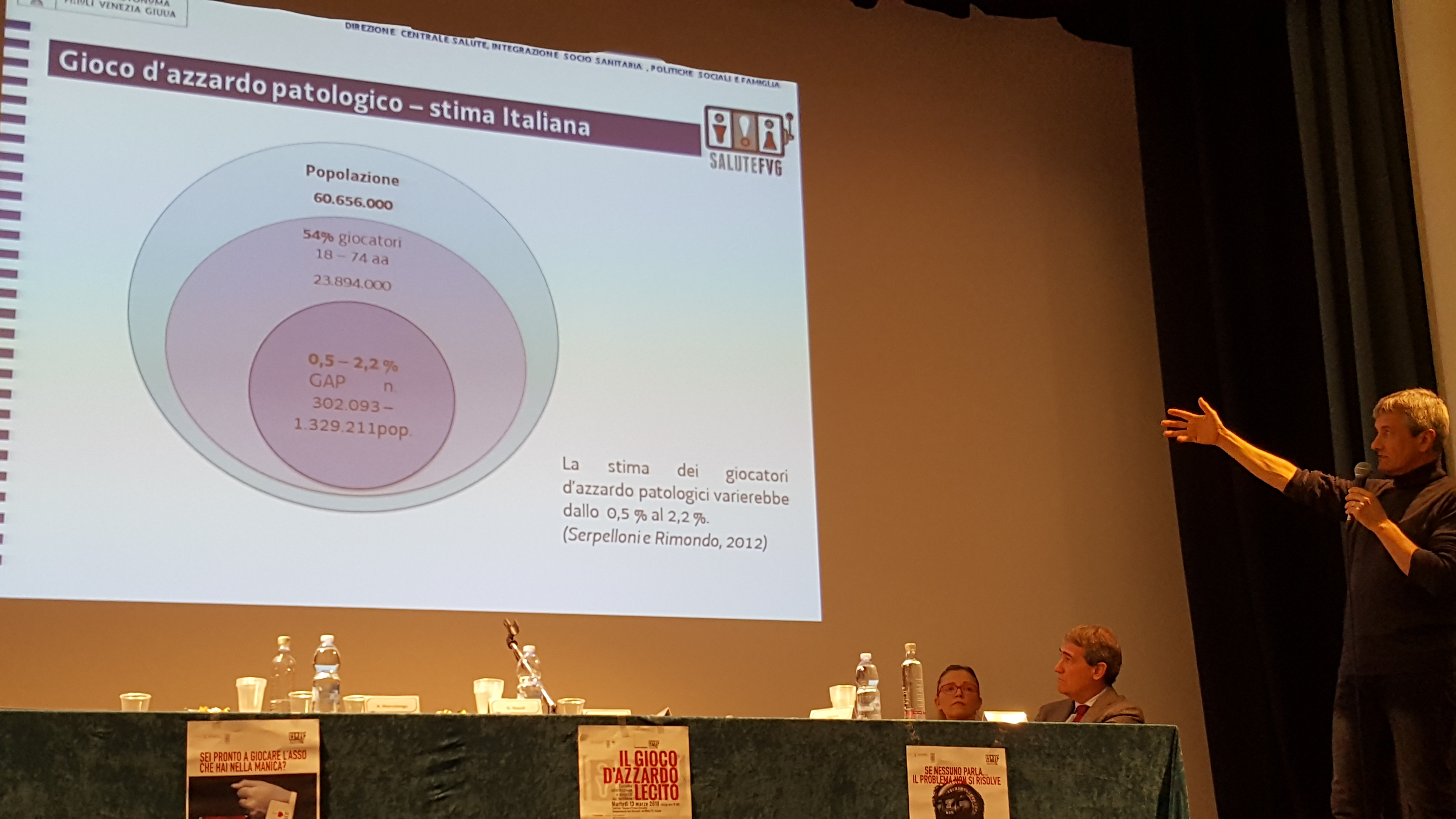 Come è stato spiegato durante l'evento, che sarà replicato il 20 marzo a Udine e il 27 a Pordenone, a livello nazionale la spesa per il gioco d'azzardo è di circa 96 miliardi di euro e le persone affette da patologie collegate al gioco sono tra lo 0,5 e il 2,2 per cento della popolazione, ovvero tra le 300mila e gli 1,3 milioni, mentre quelle che si rivolgono ai servizi sociosanitari per queste problematiche sono 15mila.