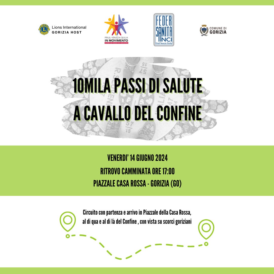 Il Lions di Gorizia Host propone venerdì la camminata "10.000 passi di salute a cavallo del confine" aperta a tutti.