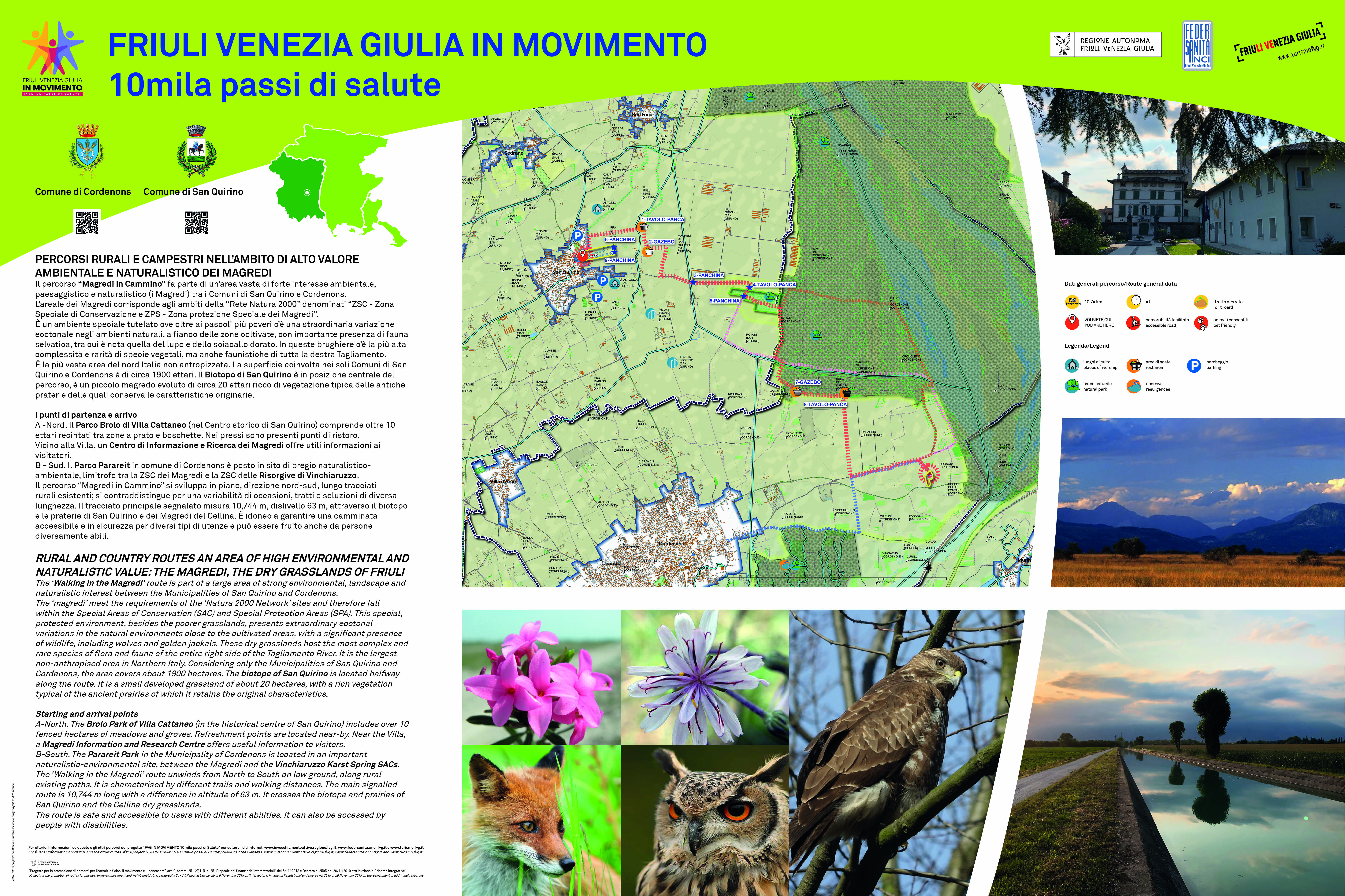 Inoltre, nel 2021 la Regione Friuli Venezia Giulia, tramite Promoturismo FVG, ha sposato gli obiettivi condivisi dal progetto Interreg Italia – Croazia “Take it Slow” attraverso la valorizzazione degli itinerari “FVG in Movimento - 10.000 passi di salute”.